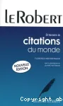 Florence Montreynaud, Directeur de publication ; Matignon Jeanne, Directeur de publication | Paris : Le Robert | Les Usuels du Robert, ISSN 11474165 | 2009Cette nouvelle édition du Dictionnaire de citations du monde rassemble plus de 8000 citation illustrant 475 grands thèmes. Elle sont empruntées à prés de 2500 auteurs originaires de 126 pays.![]()